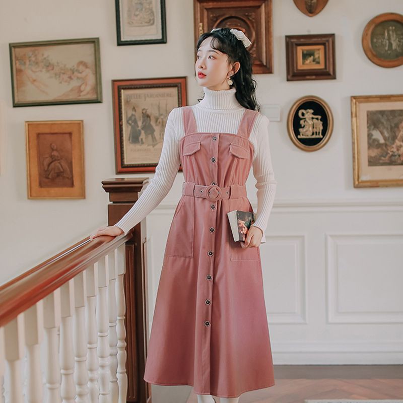 Vintage Cottagecore Corduroy Korea Midi Dress Light Pink Premium Shopee Indonesia