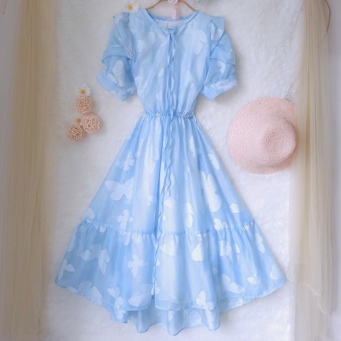 Vintage Cottagecore Midi Dress Biru Muda F6f Shopee Indonesia